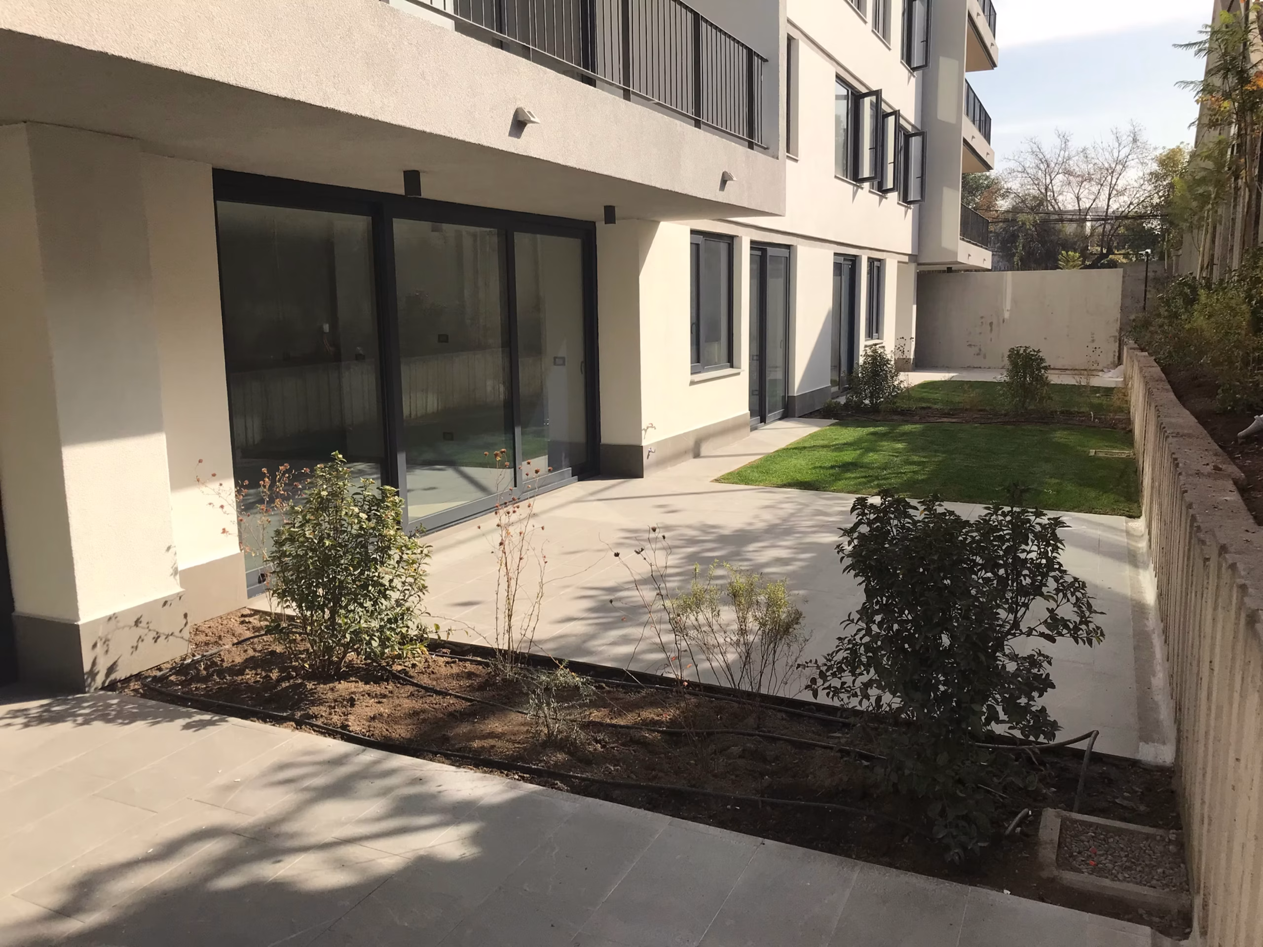 Se encuentra emplazado frente a una plaza, condición que la arquitectura busca aprovechar mediante la proyección de las terrazas y la maximización de vistas desde el living comedor en los departamentos orientados en esa dirección. Los departamentos del primer piso cuentan con un jardín asignado a cada uno, mientras que cuatro departamentos del último piso tienen acceso directo a una terraza panorámica privada en la azotea.